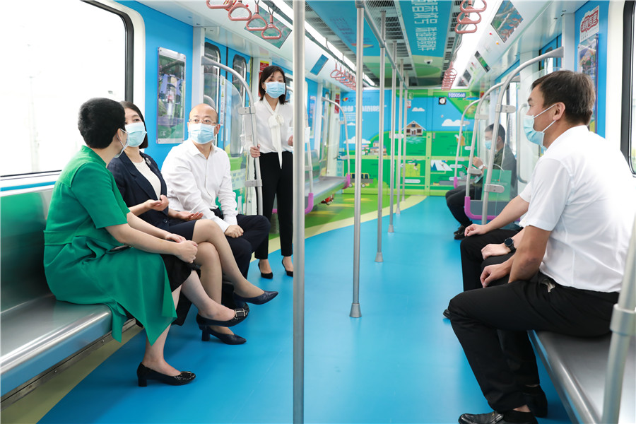 隨著大屏展開(kāi),“香城號(hào)”社區(qū)旅游主題列車(chē)映入眼簾。“香城號(hào)”主題列車(chē),北起新都、穿城而過(guò)、南至雙流的 5 號(hào)線運(yùn)行,以新都區(qū)鄉(xiāng)村振興代表項(xiàng)目--“珠鏈錦繡”為主題,由 8 節(jié)車(chē)廂組成,首尾車(chē)廂為“珠鏈錦繡”項(xiàng)目的序章,像一本書(shū)的序章,提綱挈領(lǐng)地展現(xiàn)景區(qū)特色網(wǎng)紅打卡點(diǎn);中間六節(jié)車(chē)廂則按“珠鏈錦繡”6 大網(wǎng)紅打卡地,依次分為六大場(chǎng)景——芳華微馬公園“浪漫紫藤”場(chǎng)景、夏河溪鄉(xiāng)野公園“綠色自然”場(chǎng)景、尖峰運(yùn)動(dòng)公園“極限旱雪”場(chǎng)景、斑竹園足球音樂(lè)小鎮(zhèn)“別樣綠茵”場(chǎng)景、升庵故里“書(shū)香古韻”場(chǎng)景和拾里庭院“閑適鄉(xiāng)村”場(chǎng)景。